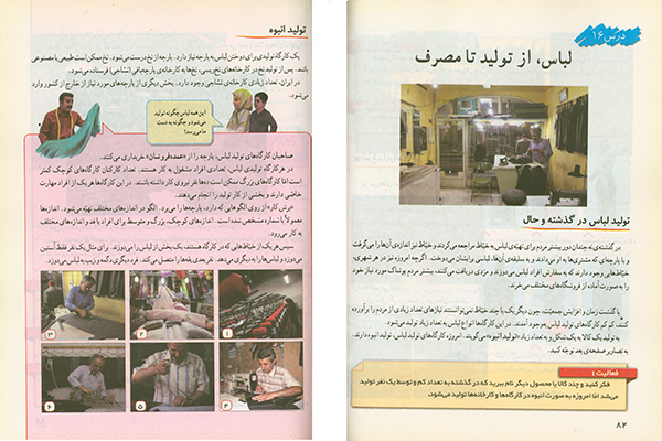 در کتاب مطالعات اجتماعی پایهی ششم ابتدایی، در درس پنجم، مبحثی با عنوان «عوامل مؤثر بر کشاورزی» آمده است. در این درس، عوامل مؤثر به دو دسته عوامل طبیعی (خاک، آب و هوا، و آب) و انسانی (نیروی کار، ابزار و وسایل، سرمایه و مواد) تقسیم شدهاند. در بخش دیگر، مشکل کمآبی و وسیع بودن نواحی خشک ایران مطرح شده و بهرهگیری از قناتها برای جبران کمآبی و همچنین خودکفایی محصولات داخلی و شناخت غذاهای محلی پیشنهاد شدهاست.