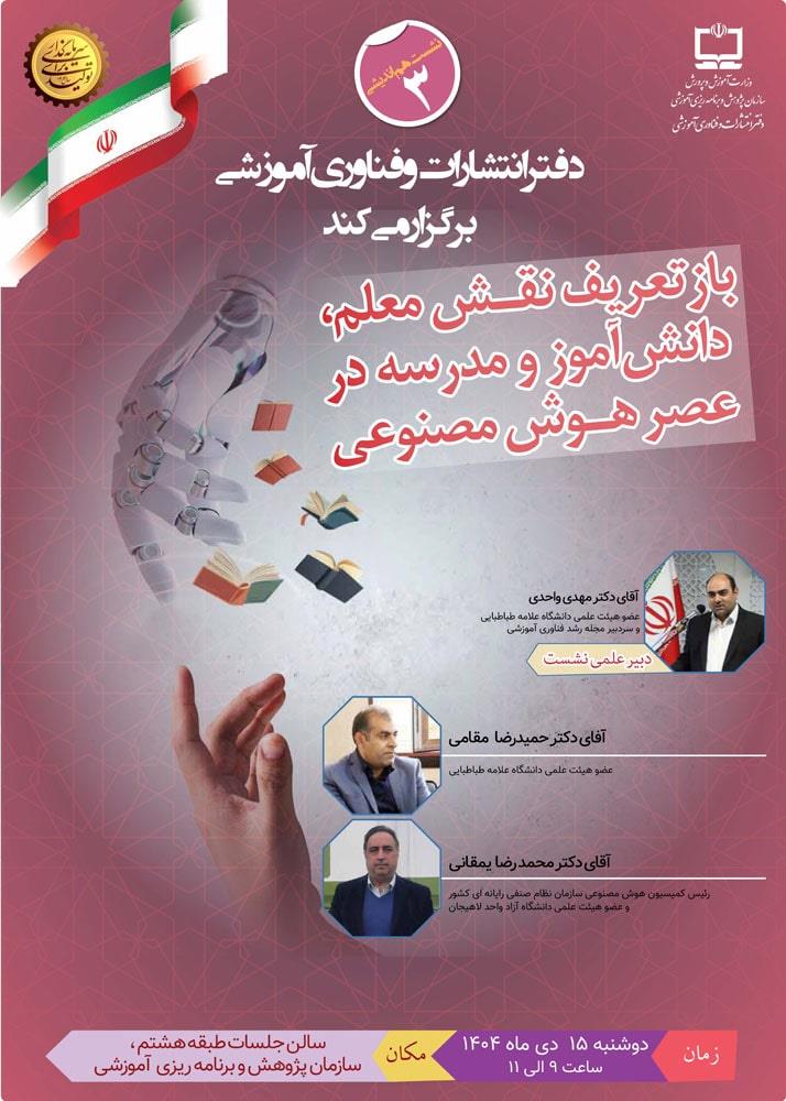 تصویر اختصاصی نقش فناوریهای نوین در آموزش زمینشناسی لزوم بازخوانی و بازپژوهی تاریخ و سیره رسول خدا (ص) پژوهش، فرصتی برای بازاندیشی شجاعت در تغییر مسیر ارزشیابی؛ آیینه یادگیری، چراغ راه آموزش تربیت در بستر فرهنگ مدرسه مراقبت از روابط عاطفی در عصر هوش مصنوعی کیفیت آموزشی معلمان؛ سنگ بنای موفقیت آموزشی چالشهای آموزش آزمایشگاه محور شیمی مستی ارباب عشق، غایت بیداری است چالش بین توسعه کمی و کیفی آموزش فنیوحرفهای بهارآور دانش محتوای پداگوژیکی در آموزش جغرافیا فصلی برای بازآفرینی مدرسه نسل بعدی دانش آموزان آلفا؟ فناوری آموزشی؛ بالهای پرواز معلم امروز آب در کوزه و ما تشنه لبان میگردیم حلقه گمشده یادگیری دانشآموزان مجله «رشد آموزش ابتدایی» همچون «دستنامهای» در کنار آموزگاران مقطع ابتدایی است مجله «رشد آموزش ابتدایی» همچون «دستنامهای» در کنار آموزگاران مقطع ابتدایی است تأکید بر تقویت زیستبوم کتابخوانی و نقش حاکمیتی جشنواره کتاب رشد در توسعه فرهنگ مطالعه تأکید بر تقویت زیستبوم کتابخوانی و نقش حاکمیتی جشنواره کتاب رشد در توسعه فرهنگ مطالعه فراخوان سومین دوره رویداد کتابنما فراخوان سومین دوره رویداد کتابنما «کتاب رشد»؛ جشنوارهای فرایندمحور برای تقویت فرهنگ کتابخوانی کودکان و نوجوانان «کتاب رشد»؛ جشنوارهای فرایندمحور برای تقویت فرهنگ کتابخوانی کودکان و نوجوانان نسخه جدید نرمافزار کاربردی (اپلیکیشن) مجلات رشد عرضه شد نسخه جدید نرمافزار کاربردی (اپلیکیشن) مجلات رشد عرضه شد انتشار فراخوان بیستوسومین دوره جشنواره ملی کتاب رشد انتشار فراخوان بیستوسومین دوره جشنواره ملی کتاب رشد گفتوگوی هفته تقویت روحیه پژوهشکتابخواندن به چه دردمان میخورد؟قصهگویی سنتی، ابزارهای هوش مصنوعیکابوس دزدان دریایی گزارش هفته تسریع دستیابی به هوای پاکبا معلمان پژوهشگر قمدانشگاه فرهنگیاننقش و اهمیت رسانه در تاریخ مقاله هفته تدریسِ داستانی با مشورت هوش مصنوعیپاسخ به شبهات شهادت حضرت زهرا(س)مدرسهای که بوی کتاب میدهدنقدی بر نظریه جامعهشناختی نسلها تجربه معلمان جلوه مدرسه در ساحت تربیت اقتصادیسوگواری و غم از دست دادنفرهنگ کتابخوانینقش انگیزه در یادگیری معرفی رشتههای تحصیلی آموزش سواد فضای مجازی در دنیارشته مدیریت آشپزی و قنادیدنیای هوشمند چیزهامعرفی رشته امور دامی معرفی مشاغل تولد ایده های برترکارآفرینی با قارچ دکمهایشرایط کار در رشته مکانیک خودروشغل: مهماننوازی مرکز بررسی آثار دانشآموزان کافه مجله گزارش تصویری نشست شورای سیاستگذاری بیست و سومین دوره جشنواره کتاب رشدنشست هماندیشی همکاران دفتر انتشارات و فناوری آموزشی با حضور معاون وزیر و رئیس سازمان پژوهش و برنامهریزیسومین جشنواره مجلات رشد با حضور مسئولان آموزش و پرورش شهر تهراننشست مدیران مدارس شهرستان تنکابن با دستاندرکاران مجلات رشد در شهرستان تنکابننشست هماندیشی همکاران معاونت مجلات رشد و فناوری آموزشی با مدیرکل دفتر انتشارات و فناوری آموزشی * بایگانی گزارش تصویری