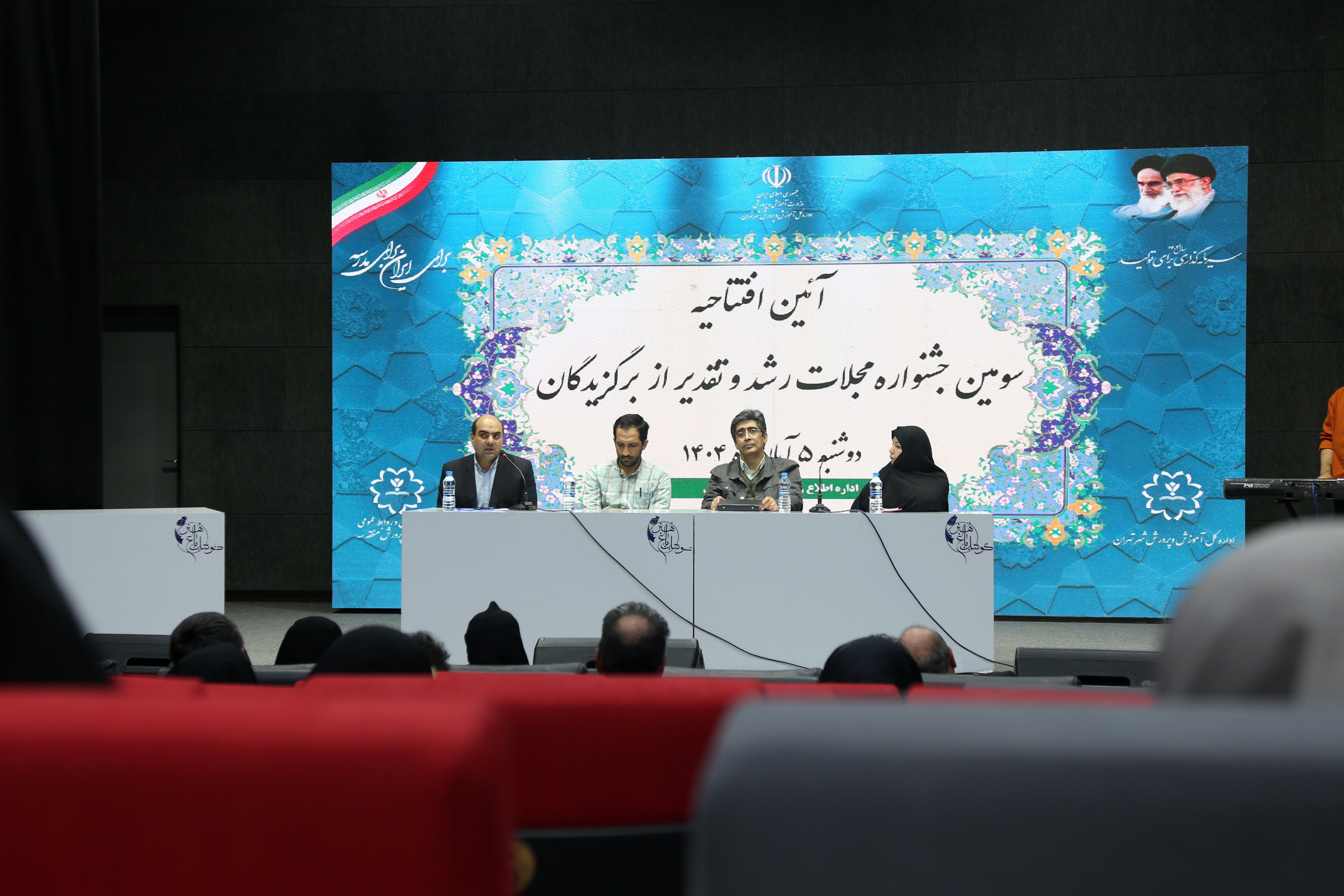 سومین جشنواره مجلات رشد با حضور مسئولان آموزش و پرورش شهر تهران تاریخ: ۶ آبان ۱۴۰۴ به گزارش واحد خبر و رسانه دفتر انتشارات و فناوری آموزشی، آیین افتتاحیه سومین جشنواره مجلات رشد و تقدیر از برگزیدگان، با حضور راحله محمدی، معاون آموزش ابتدایی شهر تهران؛ سید سعید بدیعی، مدیرکل دفتر انتشارات و فناوری آموزشی؛ محمدهادی صبوری، مدیرکل آموزش و پرورش منطقه ۳ تهران، پرویز قراگزلو، معاون تولید و انتشار مجلات رشد؛ شهرام شفیعی، سردبیر رشد دانش آموز؛ مهدی واحدی، سردبیر رشد فناوری آموزشی؛ مهدی رضایی، سردبیر رشد آموزش ابتدایی؛ مدیرانکل مناطق 19گانه و جمعی از فرهنگیان شهر تهران به میزبانی دبیرخانه مجلات رشد در اداره کل آموزش و پرورش منطقه ۳ تهران برگزار شد. تقدیر از تلاشهای مدیران مناطق 19گانه شهر تهران و فرهنگیان و دانشآموزان برگزیده در جهت اشاعه مجلات رشد، قرائت بیانیه دبیرخانه و هیئت داوران سومین جشنواره مجلات رشد آموزش و پرورش منطقه ۳ تهران و برگزاری پنل آموزشی با حضوران سردبیران مجلات رشد از جمله برنامههای این مراسم بود. عکاس: اعظم لاریجانی https://www.roshdmag.ir/u/3W1 میانگین امتیاز کاربران: 0.0 (0 رای) 12345 امتیاز 12345 نام را وارد کنید ایمیل را وارد کنید ایمیل نمایش داده شود. تعداد کاراکتر باقیمانده: 900 نظر خود را وارد کنید پس از انتشار این نظر، به من اطلاع داده شود. ارسال