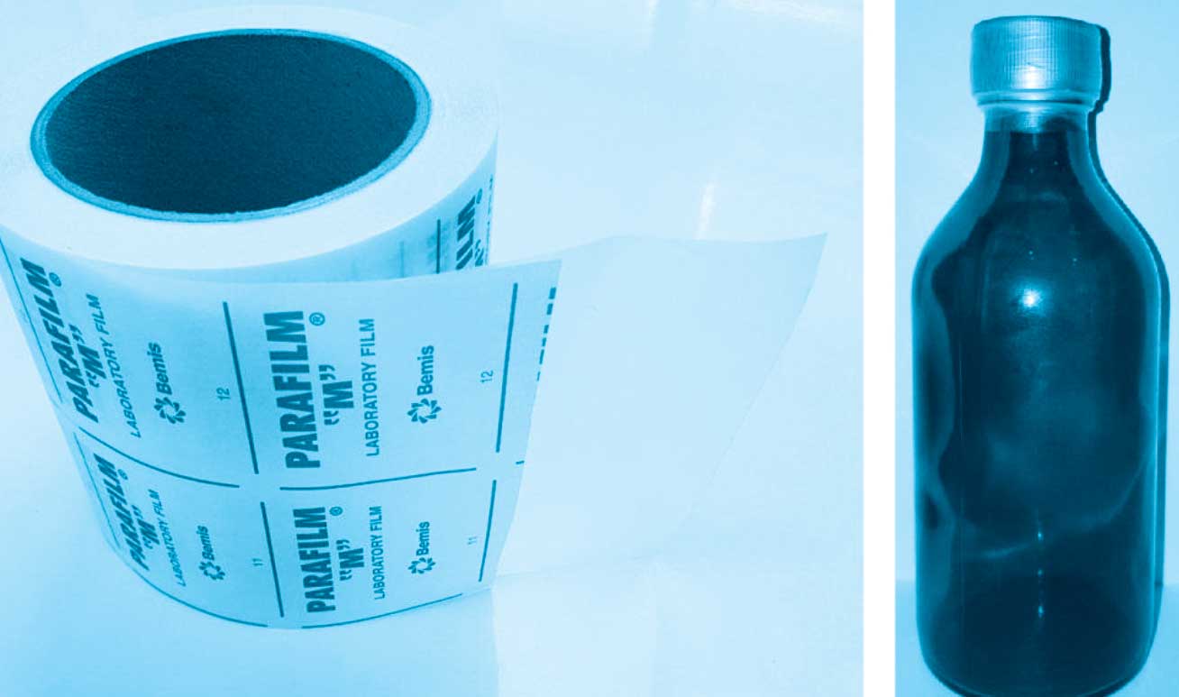 در خانه همه ما و دانشآموزان شیشههای قهوهای رنگ حاوی انواع داروها در اندازههای مختلف وجود دارد که پس از مصرف داروهای موجود در آنها، بهصورت زباله دور ریخته میشود. میتوانیم از دانشآموزان بخواهیم که شیشههای شربت خالی شده را خوب بشویند و پس از خشک کردن با سشوار، آنها را برای استفاده در آزمایشگاه مدرسه همراه خود بیاورند. تصویر چهار نمونه از این شیشههای قهوهای رنگ خالی، با حجمهای مختلف در شکل ۲ آورده شده است. رنگ قهوهای شیشهها سبب میشود نور به راحتی از آنها عبور نکند. درنتیجه،از تخریب حلال و محلول یا مواد شیمیایی موجود در آنها جلوگیری خواهد شد باریک بودن در این شیشهها نیز سبب میشود حلال یا محلولهای شیمیایی موجود در آنها پس از تبخیر شدن بهراحتی از شیشه خارج نشود. نکته جالب اینجاست که همه این شیشهها با در بطریهای نوشابه -که آنها نیز بهعنوان زباله دور ریخته میشوند- بسته میشوند.البته از در هر بطری نوشابهای برای بستن این شیشهها نمی-توان استفاده کرد. تصویر تعدادی از انواع درهای نوشابه در شکل ۳ آورده شده است. برای بستن محکم شیشه داروها ،فقط درهای گروه (۱) مناسب هستند . درهای گروه (۲) محکم روی این شیشهها محکم بسته نمیشوند. بنابراین حلالها و مواد شیمیایی محلول موجود در این شیشهها پس از گذشت زمان بهتدریج از آنها خارج میشوند. برای موادی مانند کلروفرم، کربنتتراکلرید، استون، دیکلرومتان، هیدروکلریکاسید، هیدروبرمیکاسید، آمونیاک که نقطه جوش پایینی دارند، بهتر است پس از بستن در شیشه حاوی این مواد ، با استفاده از درهای گروه (۱)، دور در شیشه بسته شده نوار پارافیلم بپیچیم تا از تبخیر این مواد بهطور کامل جلوگیری شود، شکل ۴ . پس از برداشتن محلولها و حلالها از شیشههای حاوی آنها در زیر هود آزمایشگاه، دوباره باید در شیشه با حدود ۵/۱ سانتیمتر از برش عرضی نوار پارافیلم بسته شود. قیمت یک حلقه کامل نوار پارافیلم حدود یکصد هزار تومان است و یک حلقه از آن برای یک سال استفاده در آزمایشگاههای فعال بیش از ۲۰ مدرسه کافیست. بنابراین هزینه صرف شده برای خرید یک حلقه پارافیلم، برای هریک از مدارسی که آزمایشگاه فعال دارند حدود پنج هزار تومان برای یک سال خواهد شد که مقدار بسیار ناچیزی است.