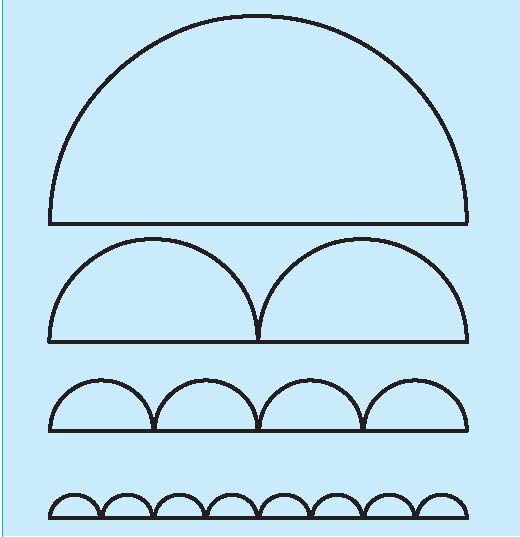 یک پارهخط به طول 1 در نظر میگیریم و روی آن، n نیمدایره
