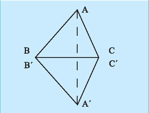 نیز با هم برابرند. پس مثلث AAC' متساویالساقین است، یعنی C'ʹAC=A ، در نتیجه دو مثلث ABC وʹCʹBʹA به حالت ضضض با هم، همنهشت هستند!