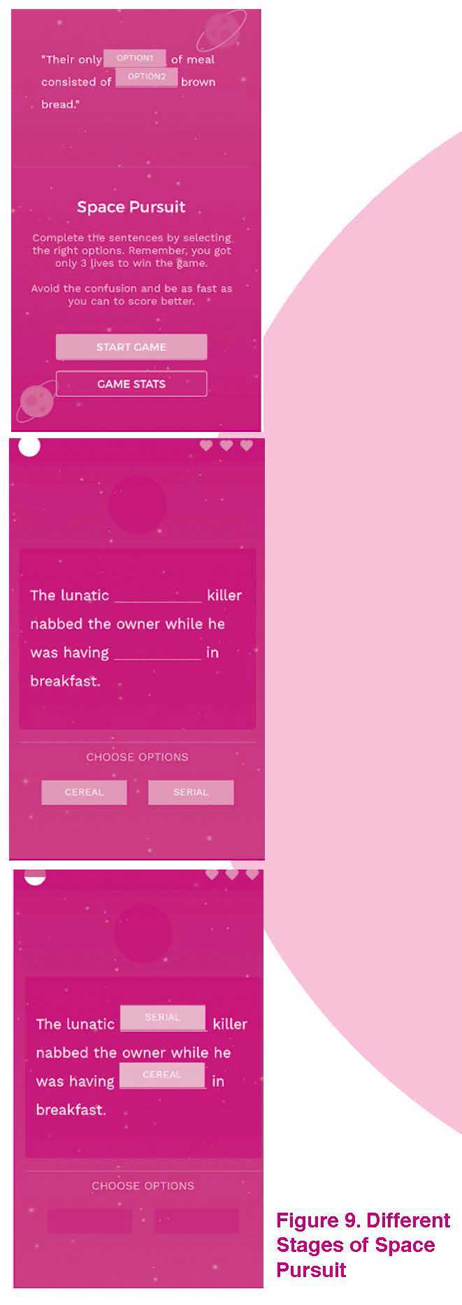 users’ reading skills,while other games such as Panda’s Trail, Fly High, Space