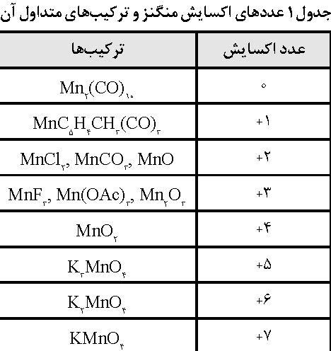 جدول 1 عددهای اکسایش منگنز را همراه با