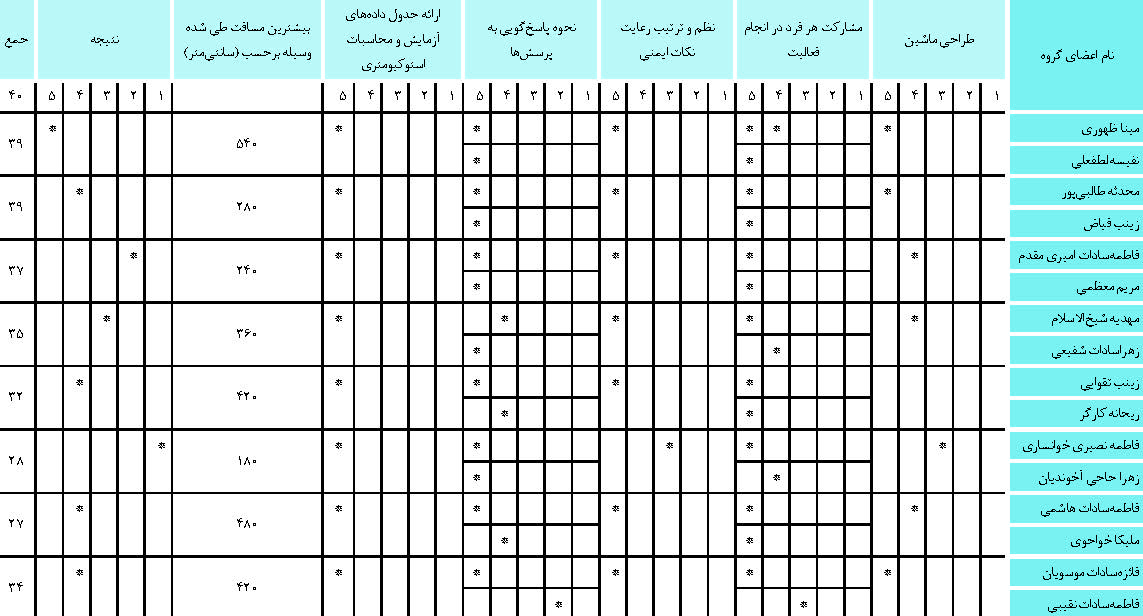 کمک چک لیستی که در ادامه آمده است، کار دانشآموزان ارزیابی شد. هر گروه باید گزارش