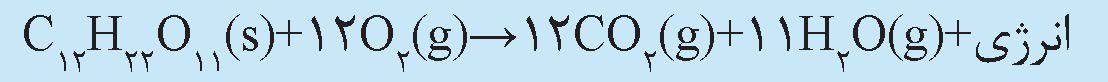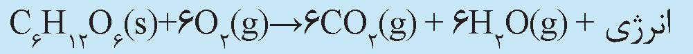 اکسیژن واکنش میدهد که به تولید کربن دیاکسید، آب و انرژی میانجامد. این فرایند را میتوان چنین خلاصه کرد:
