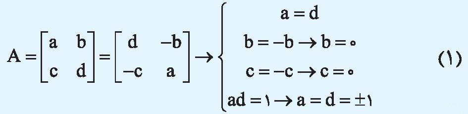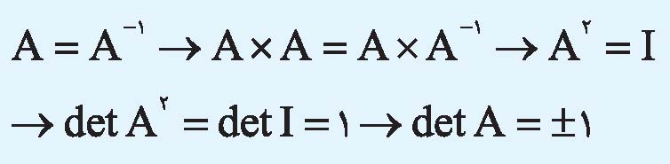میدانیم که درماتریسهای خودمعکوس مانند A، دترمینان1 ± است، یعنی دترمینان در این نوع ماتریسها، دو حالت دارد.