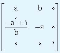 b≠0 و دلخواه و a دلخواه ماتریسی خود معکوس است. بنابراین، بینهایت ماتریس خود معکوس از مرتبه 3×3 داریم.