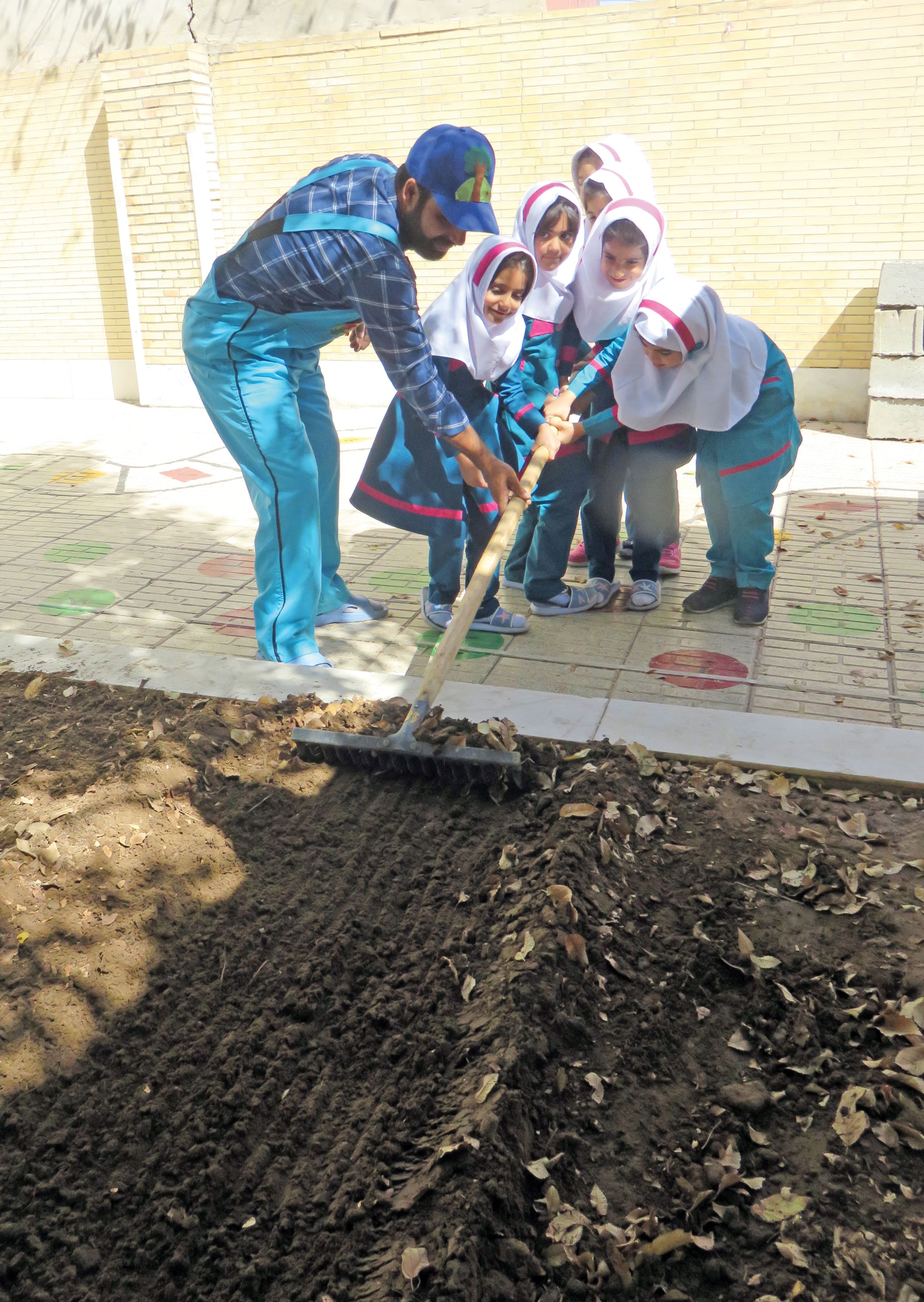 دبستانی اولین گروهی بود که برای کاشت آماده شده بود. همه به کنار آقای باغبان