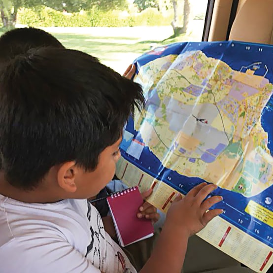 قبل از رفتن، لازم بود روی نقشه جزیره کیش محلهایی را که میخواستیم بازدید کنیم، پیدا کنیم و این کار منجر به آشنایی بیشتر ما با خواندن نقشه، آن هم در بستر یک کار عملی شد؛ چون از قبل در پروژهای دیگر برای آشنایی با جهتهای اصلی و راهنمای نقشه کار کرده بودیم و حالا نوبت این بود که آنها را بهکار ببریم و همین نقشهخوانی و پیدا کردن محلهای هدف منجر به آشنا شدن با مختصات بهکار رفته روی نقشه شد.