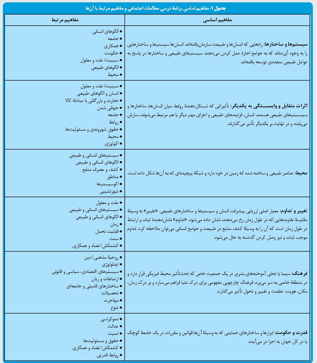مفاهیم زیربنایی برنامه درسی مطالعات اجتماعی