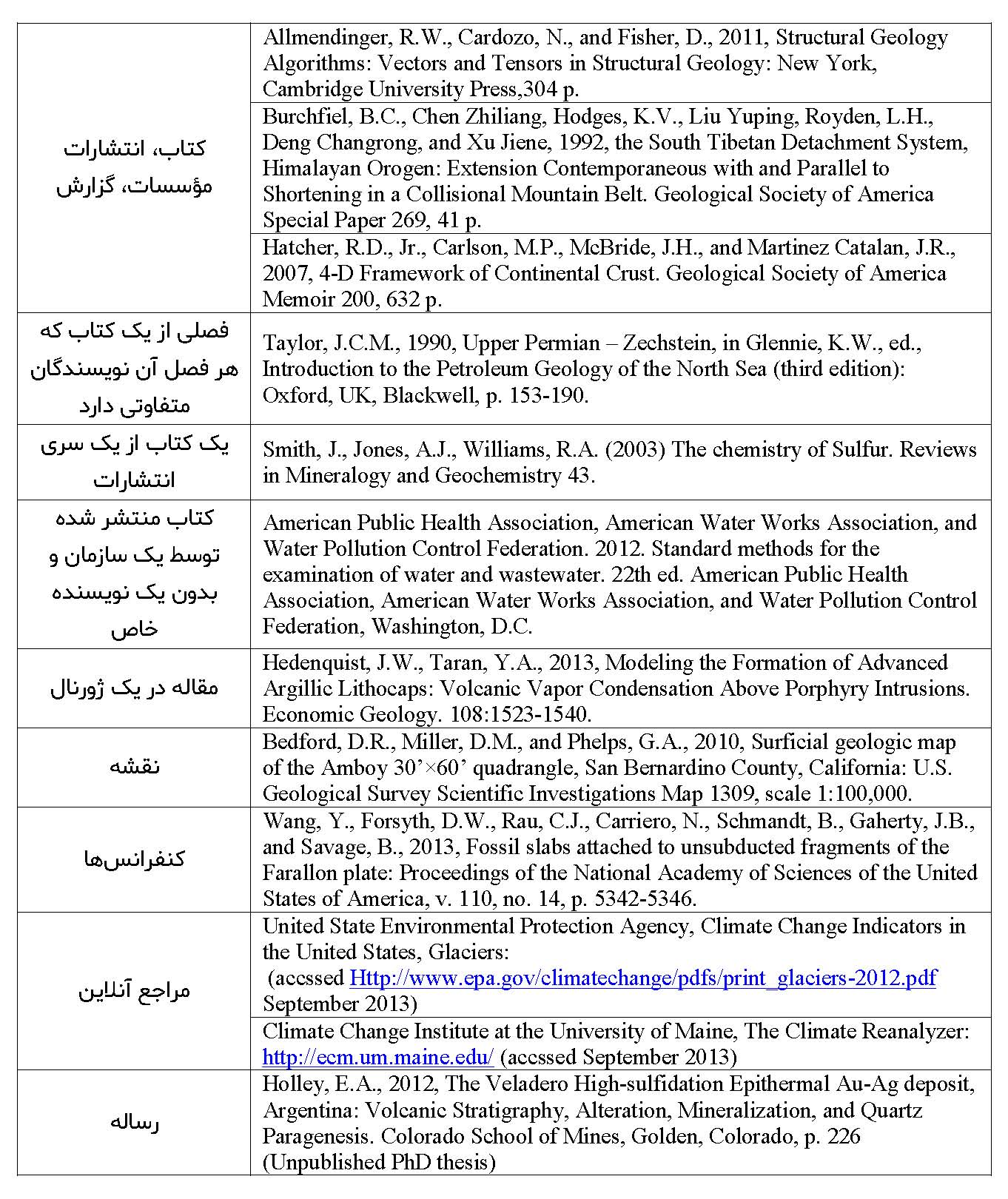 • برای مراجع مختلف، کتاب، مقاله، کنفرانس، و ..... از شیوه مرجعنویسی زیر استفاده شود: