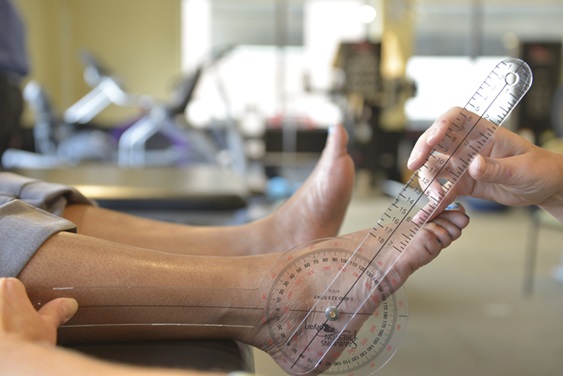 قرار دادن مفصل سابتالار در حالت خنثی و اندازهگیری ارتفاع ناوی با خطکش؛