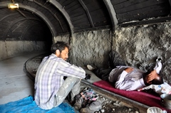 در سنگها شگفتزده شدهاند. فرزندانی که دست در دست والدین از داخل تونل معدن