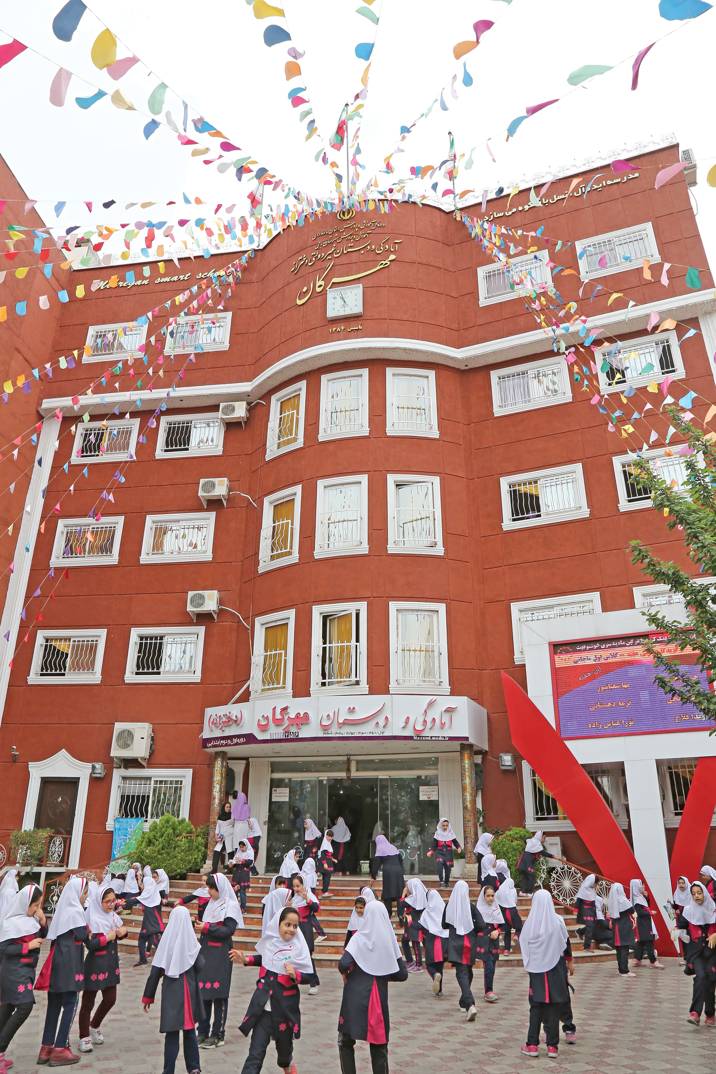 اگر شما هم گذارتان به این مدرسه بیفتد، حتماً در نظر اول نمای خوشرنگ مدرسه توجهتان را جلـب میکــند. نمای اُخرایی ساختمان مدرسه بیدلیل انتخاب نشده است؛ خانم هژبری از یک مشاور هنری کمک خواسته تا مدرسهاش را به رنگی دربیاورد که نه بچهها را خموده کند و نه خیلی هیجانی. او علاوه بر روح دانشآموزانش هوای جسمشان را هم دارد. خوبی این مدرسه به همین موارد کوچک است. همین مواردی که یکییکی جمع شدهاند و یک مدرسه خاص را ساختهاند. کیفهای بچههای مهرگان از کیفهای همسالانشان در ایران سبکتر است. خانم هژبری و همکارانش تعداد صفحات مورد نیاز برای دفاتر هر درس را بهطور عملی حساب کرده و خودشان آنها را سفارش داده و چاپ کردهاند؛ مثلاً دفاتر املای کلاس اولیها فقط چهل برگ دارد. فاصله بین خطوط دفترها متناسب با پایه تحصیلی بچهها طراحی شده است و از جلدهای گالینگور خبری نیست. نتیجه اینکه، در پایان هر سال کوهی از برگههای سفید آخر دفترها بدون استفاده به کاغذ باطله تبدیل نمیشود و کیف روی دوش بچههای مهرگان سبک میماند. خانم هژبری میگوید: «بچههای من بعداً قرار است مادر شوند و حفظ ستون فقرات سالم حداقل مراقبتی است که باید از آنها بکنیم.»