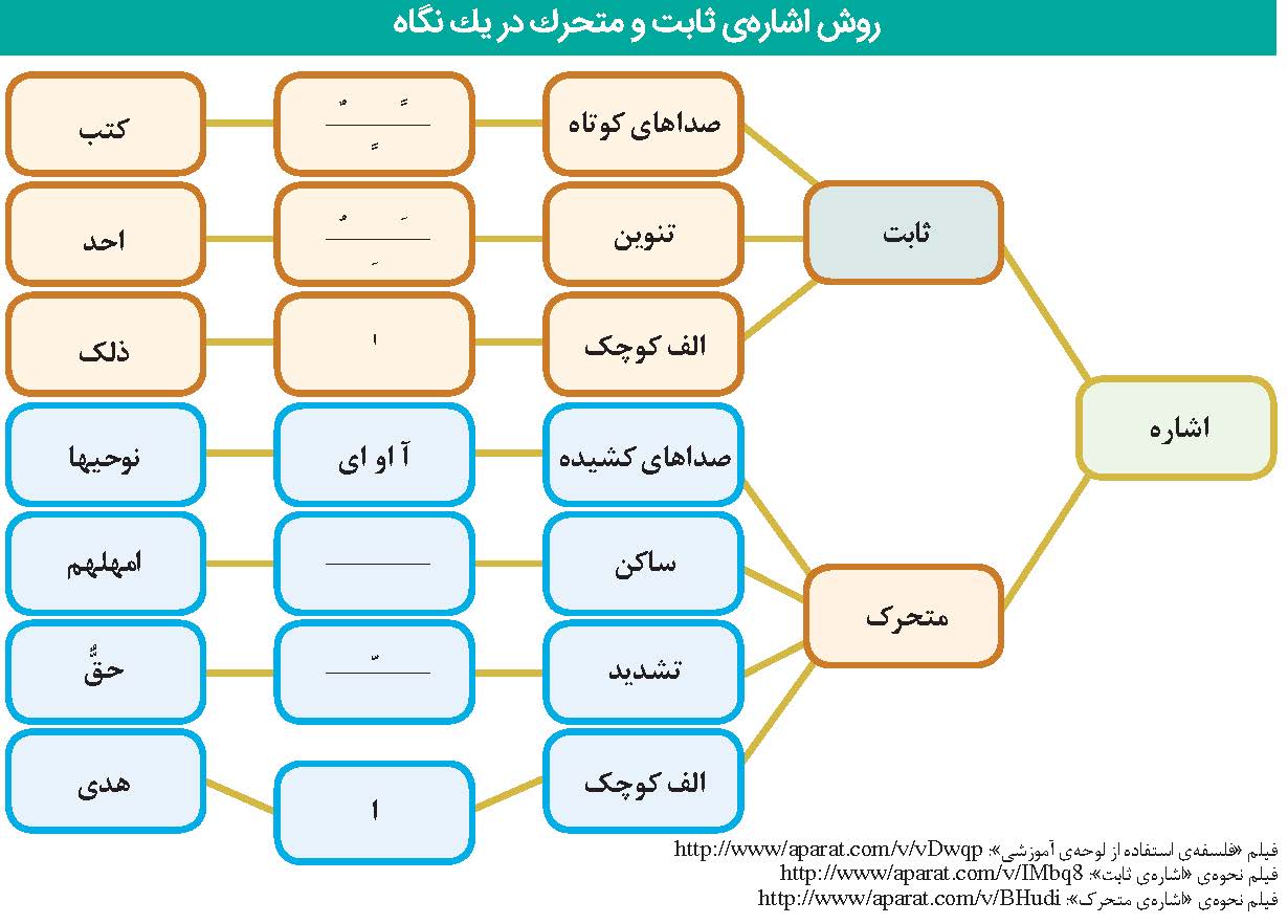 توجه: فلسفه و هدف اصلی استفادهی معلم از لوحههای روخوانی، عادت دادن چشم دانشآموزان نسبت به دقت در حرکات، علائم و نمادهاست.