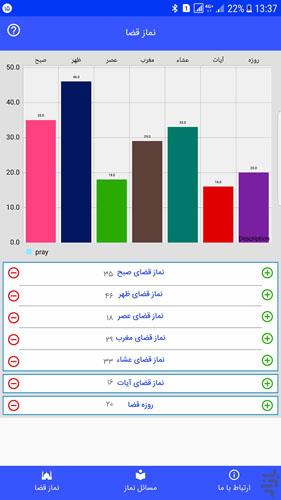مشاهده و مقایسه تعداد نماز قضاهای واردشده در نمودار؛