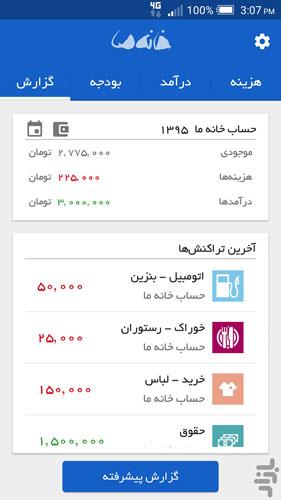 «خانه ما» یک نرم‌افزار حسابداری شخصی است که به شما کمک می‌کند کنترل بهتری بر درآمدها و هزینه‌های زندگی‌تان داشته باشید. با این نرم‌افزار می‌توانید تمام هزینه‌ها و درآمدهای خانه و زندگی‌تان را ثبت و دسته‌بندی کنید و از گزارش‌های متنوع این نرم‌افزار برای تصمیم‌گیری و برنامه‌ریزی بهتر دخل‌وخرج خود استفاده کنید. نرم‌افزار خانه ما، نرم‌افزار رسمی مسابقه تلویزیونی خانه ماست که شرکت‌کنندگان در این مسابقه، استفاده می‌کنند. مسابقه خانه ما، مستند مسابقه‌ای تلویزیونی است که سه خانواده در رقابتی یک‌ماهه، به خرج گروه سازنده زندگی می‌کنند و با چالش‌هایی روبه‌رو می‌شوند. سرانجام خانواده‌ای برنده می‌شود که درآمد و هزینه‌های خود را با حفظ کیفیت مطلوب زندگی به‌صورت بهینه مدیریت کرده باشد.