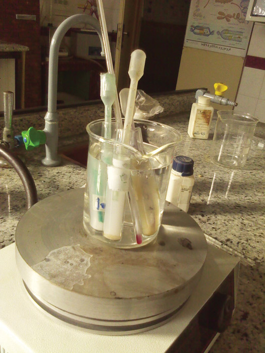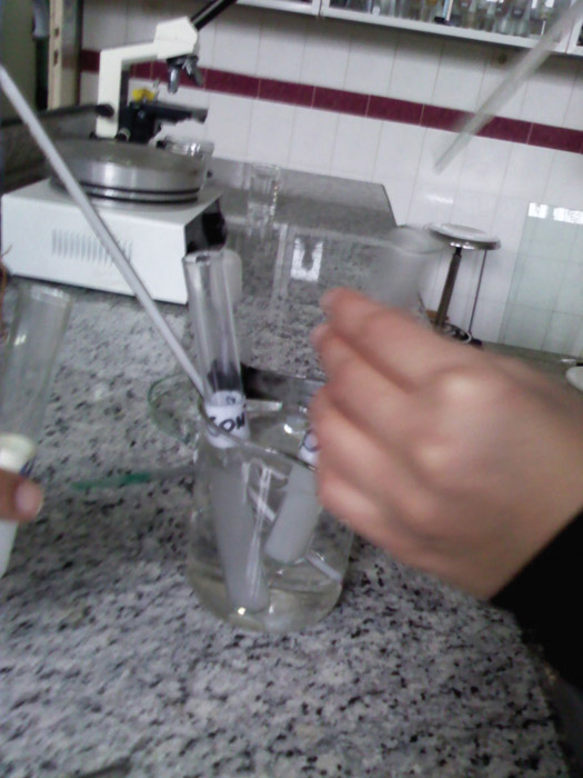 ٦. هر سه لوله آزمایش را در حمام ۳۷ درجه قرار میدهیم.