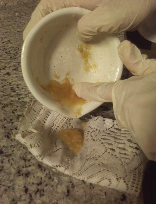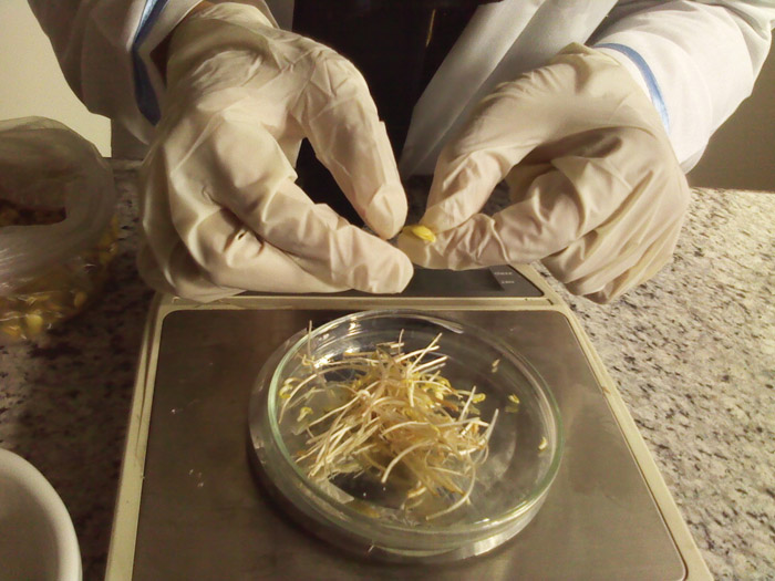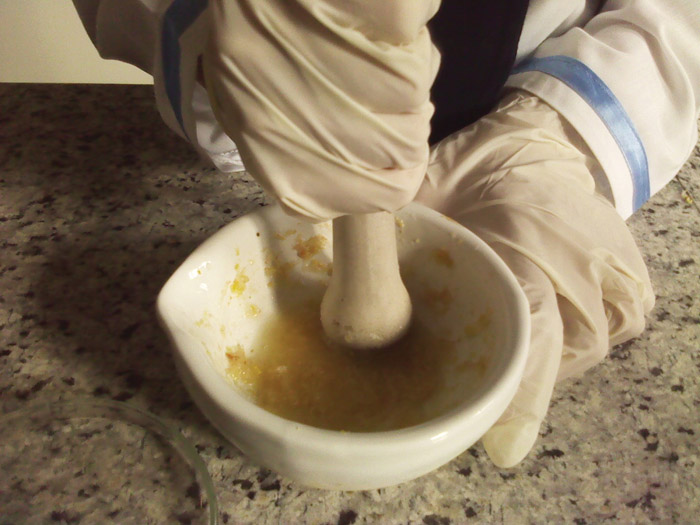 ۱. ۵ گرم جوانه نخود را به وسیله هاون له میکنیم.