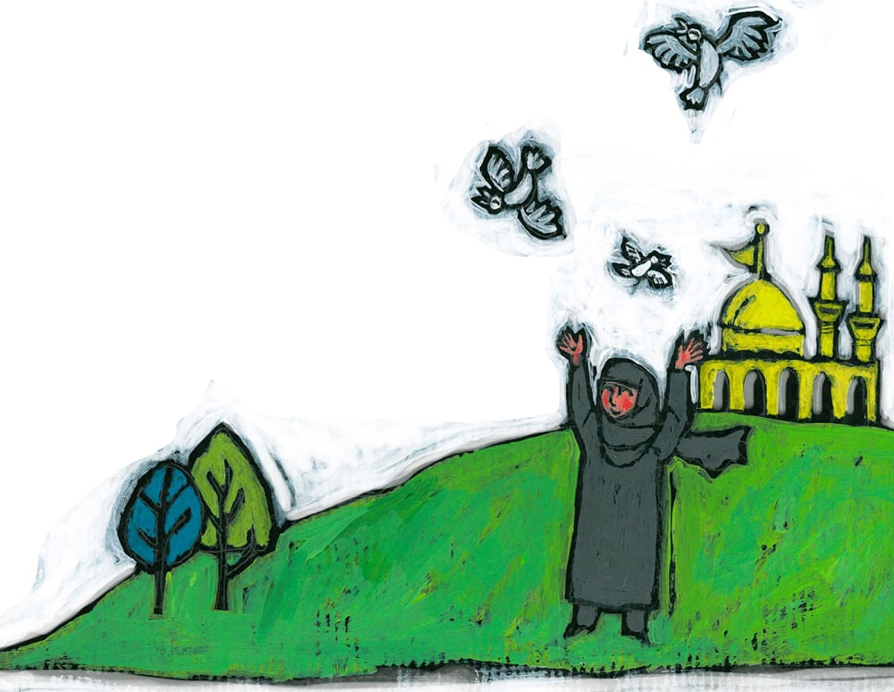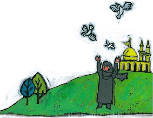 همهجا پرچم سیاه زدهاند. مردم سینه میزنند و عزاداری ميکنند. من دست مامان را میگیرم تا گم نشوم. آرامآرام همراه جمعیت بهطرف حرم شما میآییم. دوـ سه سال گذشته خانوادهی ملیکا از ایران مهمان ما بودند. اوّلش آنها را نمیشناختیم. بابا آنها را توی راه دیده بود که خیلی خسته شدهاند و دعوتشان کرده بود خانه. مامان و من خیلی خوشحال بودیم. مامان بهترین غذاهایش را پخت و نوترین ملافهها را برایشان آورد تا بخوابند. میگفت آنها مهمان امام حسین(ع)هستند باید ازشان خیلی خوب پذیرایی کنیم. ما با هم خیلی دوست شدیم. پارسال هم ما مهمان آنها شدیم و به ایران رفتیم. امّا امسال آنها نتوانستند بیایند. وارد حرم میشویم. یاد ملیکا میافتم که حتماً دلش میخواست اینجا باشد. به جای او دعا میکنم. برای همهی آدمها و همهی موجودات دنیا.