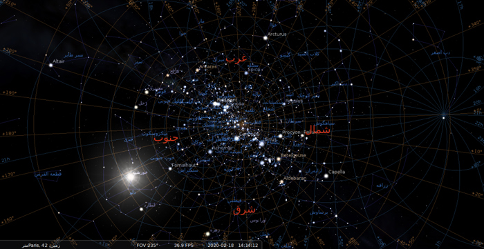 تصویر1. نمایش سه بعدی موقعیت ستارگان و سیارهها، حرکت آنها و...
