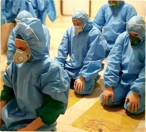 در جهاد کرونا، نمیشود از همه بگویی و از کادر درمانی جهادگرمان چیزی ننویسی. مثل همین رزمندههایی که بعد از یک شیفت نفسگیر کاری و دوری طولانی از خانواده، بعد از یک عبادت دلچسب جهادی، به عبادتی دیگر روی آورده و اینگونه به نماز ایستاده و به خدایشان تعظیم میکنند. تمام ایران، قدردان زحمتهای شماست.
