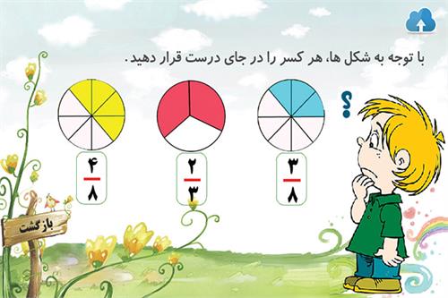 در این بخش مثالی از ساخت یک اسلاید تمرین آشنایی با کسر (درگ‌ اند دراپ) در نرم‌افزار کپتیویت، برای دانش‌آموزان پایه چهارم ابتدایی، آورده شده است. در ابتدا در اسلاید موردنظر، شکل‌هایی را که از قبل آماده کرده‌ایم، از طریق زبانه Media و Image وارد می‌کنیم (شکل‌های 1 و 2).