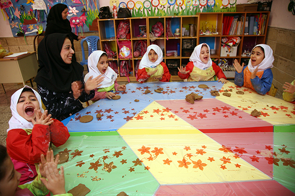 از گروه اول خواستم با وسایل خود به جلوی کلاس بیایند. دانشآموزان با وسایل خود آمدند و در حالیکه نامهای خود را تغییر داده بودند، کلاس را به مزرعهای کوچک برای کاشت محصول تغییر دادیم. اعضای گروه خاک را در ظرف ریختند.