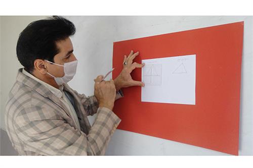 ساخت تخته میخ و کش که برای تدریس خطهای موازی و مورب و تساوی زاویهها و ضلعهای روبهرو در چهارضلعیها از آن استفاده میشود. ساخت شکلهای هندسی به کمک تلق برای تدریس محور، مرکز تقارن و شناسایی شکلهایی که محور و مرکز تقارن دارند. این وسیله را در زمان تدریس درست کردیم و بچهها هم به صورت گروهی در آن مشارکت داشتند. از آنجا که تدریس خطهای موازی و مورب روی تخته برای اغلب دانشآموزان زیاد قابل فهم نبود، پیشنهاد ساخت وسیله را به دانشآموزان دادم و یادگیری خیلی بهتر انجام شد.