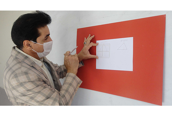 با توجه به مباحث درس ریاضی، با مشارکت دانشآموزان وسایل ساده و متعددی ساختهایم. این مشارکت باعث میشود قوه تخیل آنان بیشتر فعال شود و خودشان هم دنبال ساخت وسایل ساده برای حل مسائل درسی باشند. ما حتی از این وسایل، نمایشگاه کلاسی هم گذاشتیم. درباره تخته میخ و کش که توضیح دادم. کار دیگر ما درستکردن شکلهای هندسی، مانند چندضلعیها، روی صفحه برای مشخصکردن محور و مرکز تقارن که به کمک این شکلها خیلی راحت متوجه میشوند کدام شکلها مرکز تقارن دارند یا نه، کدام شکلها محور تقارن دارند یا نه، و یا هر شکل چند محور تقارن دارد.