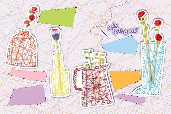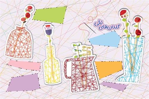 - طرح گلدان را با مداد خیلی کمرنگ روی مقوّا بکشید. سپس با استفاده از نخهای رنگی و سوزن شروع به دوختن طرح کنید.