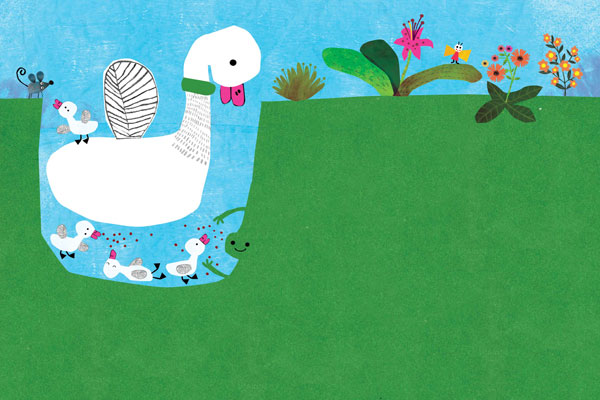 چاله هر روز برای مرغابی قصّه گفت. بالاخره جوجهها از تخم درآمدند.