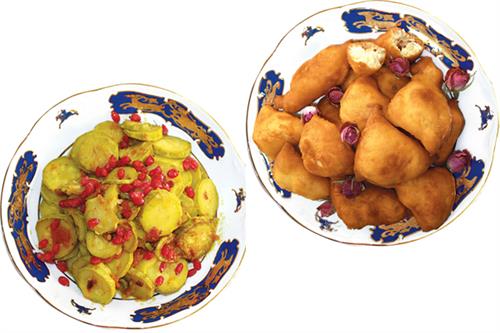 خمیر به قطر نیم سانتیمتر را به شکل لوزی یا مربع برش دهید.  در ظرفی یک استکان روغن بریزید و بگذارید تا داغ شود.