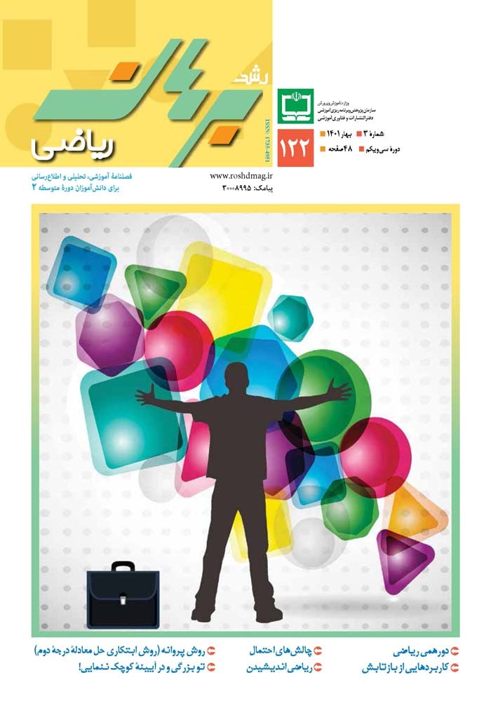 همچنین، عزیزان و بزرگوارانی که زمانی دانشآموز یا دانشجو بوده و جزء خوانندگان این مجله بوده و مقالاتشان در این مجله بهچاپ میرسیده و در حال حاضر جزء اساتید بهنام و ریاضیدانان معروف ایران اسلامی بهشمار میروند و باعث افتخار جامعه فرهنگی و ریاضیات کشور محسوب میشوند.
