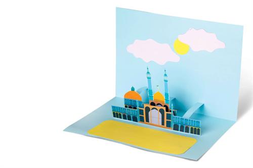 3. با باز کردن مقوّا باید تصویرها به صورت عمودی در صفحه قرار بگیرند. پس باید پایه داشته باشند. یک نوار مقوّایی به عرض یک سانتیمتر قیچی میکنیم.  یک مستطیل بهدست میآید. دو طرف مستطیل را به یک اندازه تا میکنیم.