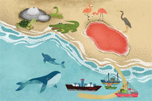 مَکران جاهای دیدنی زیادی دارد؛ مثلِ کوههای مرّیخی، دریای صورتی، تپّهی گلفشان و بندر چابهار... توی این بندر میتوانی کلّی قایق و کشتی ببینی. دریای عمّان خیلی ماهی دارد. حیوانات زیادی هم اینجا زندگی میکنند.
