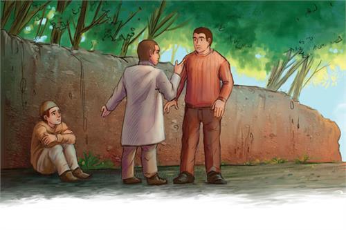 عمّه گفت: «تو مگر دوستش نیستی؟ نگذار او را بزند.»