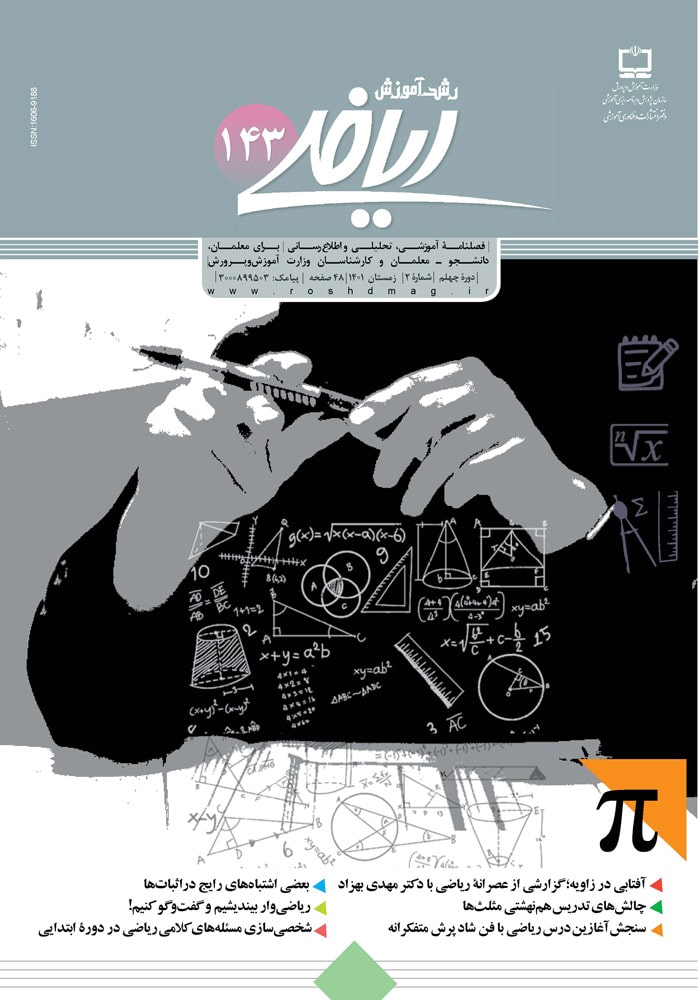در همین راستا، فصلنامه تخصصی «رشد آموزش ریاضی»با طرح مسائل جاری آموزش ریاضی ایران و جهان در کمک به ارتقای دانش موضوعی و حرفهای معلمان ریاضیِ دورههای گوناگون تحصیلی، در زمینه؛ برنامه درسی، توسعه تفکر ریاضی، توجه به فرهنگ و تمدن ایرانی و اسلامی در بستر فرهنگ ریاضی، و توجه به کاربرد ریاضی در زندگی، علوم و فناوری و .... منتشر میشود. رشد آموزش ریاضی در هر شماره با درج مطالب مناسبی ذیل سرفصلهای؛ یادداشت، دانش موضوعی، دانش حرفهای، تجربههای تدریس معلمان ریاضی، تاریخ و فلسفه ریاضیات، گفتوگو، گزارش و انواع خبر، سعی دارد که بر دانش و اطلاعات دبیران و مخاطبان بیفزاید. در این شماره نیز با مطالب و مقالههای متنوع به این موضوعها پرداختهایم که در ادامه مواردی از آنها را معرفی میکنیم: