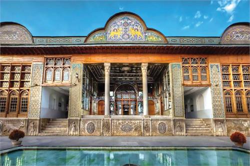در این عمارت قدم به قدم شاهد یک اثر هنر بی‌مانند هستیم. تمامی درهای بنا از چوب گردو و مزین به خاتم‌کاری هستند و تلألوی صدف‌های خلیج فارس که در آن‌ها به‌کار رفته، واقعا دیدنی است. بخش پایین دیوارها و بخاری دیواری از سنگ مرمر یزد و تبریز ساخته شده‌اند و دارای حجاری‌هایی مانند نقش داریوش هخامنشی و تصویر حیوانات به سبک تصویرهای قاجار هستند.
