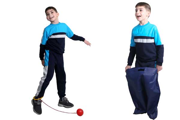 با طناب یک توپ را به حلقه وصل کن. حالا مچ یک پایت را