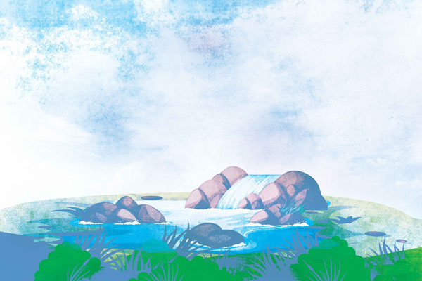 چشمه از کوه تراوید، سـرخوش و چالاک و تیزپا. راهی دراز پیش رو داشـت. سبزه را سلام داد. صخره را طواف کرد. در گوش سنگ، نرم و عاشقانه نجوا کرد. درختچهها را مهربانانه نواخت. نوک پرندهای تشنه را بوسه داد.