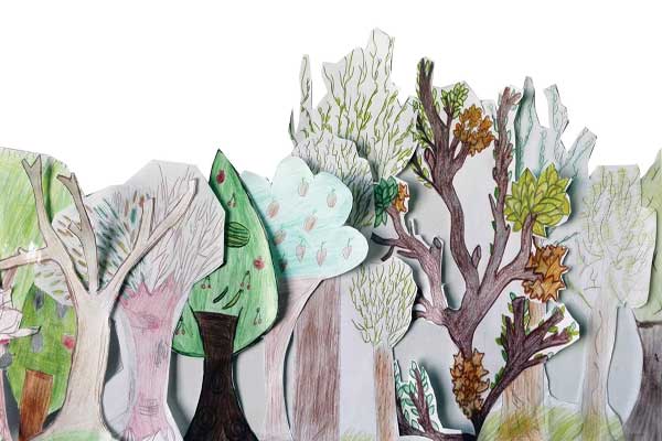 دانشآموزان با هوش و ذکاوتی کمنظیر، در جلسه بعدی، درختان خود را آوردند. نگاهی اجمالی به آثارشان انداختم. به آنچه میخواستم رسیده بودم. آنها ویژه عمل کرده بودند. اما درس هنوز ادامه داشت. از آنها خواستم دور درختهایشان را با قیچی برش بزنند. علامتسؤالها را در چشمانشان میدیدم. پس از مدتی درختها روی میز بودند. آنها را چسب به هم چسباندم. مجموعهای از درختها ایجاد شد. آن اثر تازهخلقشده راروی دیوار کلاس نصب کردیم. بچهها کارهای خودشان را به یکدیگر نشان میدادند و شور و شعفی جالب در آنها برپا شد. مدتی گذشت سپس گفتم: و اما درس.
