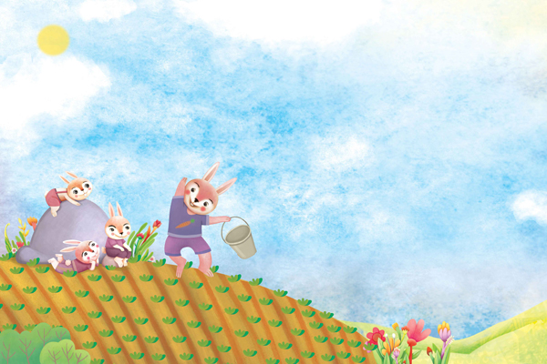 ننهخرگوشی لبخندی زد و شروع کرد به آب دادن بذرها.