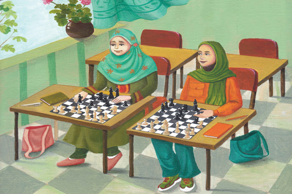 رویا به کنار شادی میرود [هر دو کنار هم بیرون را نگاه میکنند] و میگوید: «مادرم میگوید اگر شطرنج یاد بگیری برای رشد ذهنت مفید است. درست است اوّل خیلی دوست نداشتم ولی وقتی به حرف مادرم گوش کردم، کمکم دیدم بعضی وقتها لازم است که شطرنج بازی کنم. ولی خب علاقهی چندانی ندارم.»