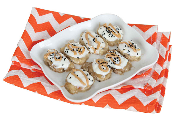 4. عسل را با ماست قاتی کن و روی هر حلقهی موز یک قاشق سرخالی از آن بریز.
