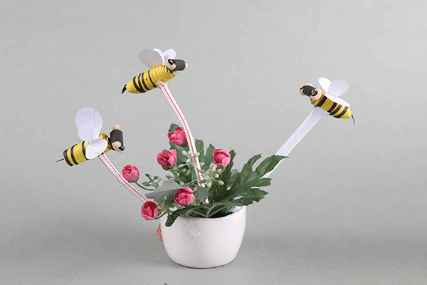 10. سر نی را مثل شکل ببر. زنبورک را با چسب مایع به نی وصل کن.