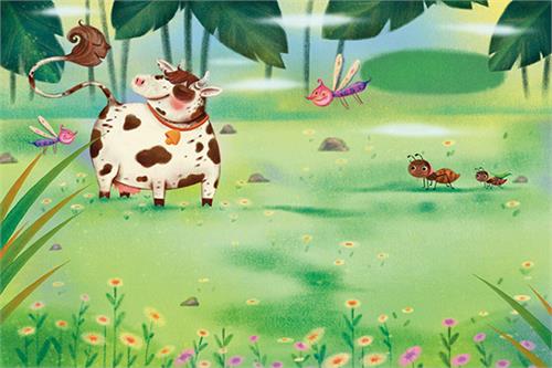 گاو خیلی ناراحت شد. امّا دمش که پشت درخت قایم شده بود، خوشحال شد و با خودش گفت: «خوب شد از دستش فرار کردم! تا او باشد که با من کسی را اذیّت نکند.»