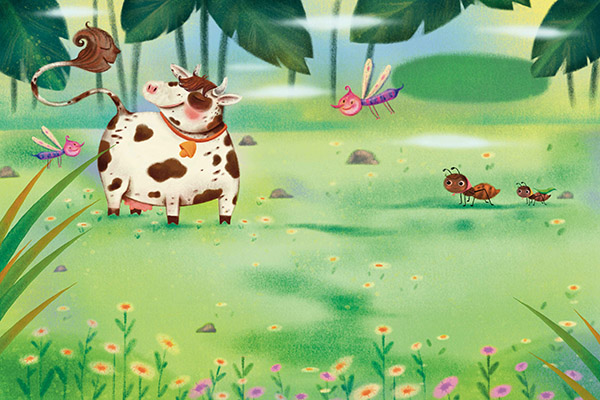 گاو وقتی دمش را دید، خیلی خوشحال شد و مای بلندی کشید.
