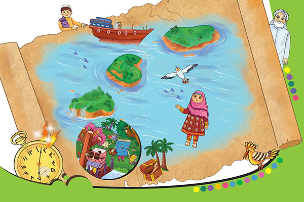 ناخدا و هدهد درست شبیه داستانهایی بودند که پدرشان در این سالها برای آیه و آرمان تعریف کرده بودند. ناخدا که گویا متوجّه شد نسلهای آیندهاش جعبه را پیدا کردهاند، با دیدن بچّهها به آنها خوشآمد گفت، ولی قبل از اینکه فرصت کند سؤال دیگری بپرسد، بچّهها موضوع ساختن کتابخانهی کوچک، برای کتابهای همیشه پخش و پَلایشان را با او و هدهدش در میان گذاشتند. هدهد پس از کمی فکر کردن گفت: «ما برای ساختن یک کتابخانهی کوچک به وسایلی نیاز داریم که هر کدام از آنها در یکی از جزیرههای نقشهی دریایی پیدا میشود. جعبه را میتوانیم در جزیرهی علوم پیدا کنیم. ساختن قیچی هم فقط از اعضای قبیلهی جزیرهی اجتماعی برمیآید. از جزیرهی فارسی هم چسب و کاغذرنگی را تهیه میکنیم. بقیهی وسایل را هم میتوانیم در جزیرهی ریاضی جفت و جور کنیم.» ناخدا به نشانهی موافقت، خبردار ایستاد و به هدهد فرمان حرکت داد. کمی بعد، جدّ بزرگ بچّهها با استفاده از کمی سوخت اسرارآمیز، کشتی را به سمت اوّلین جزیره به حرکت درآورد و هدهد هم نوک دَکَل لنج نشست. او همینطور که دیدهبانی میکرد، به این موضوع فکر کرد که آیا آیه و آرمان از پسِ آزمونهایی که در جزیرهها انتظار آنها را میکشند، برمیآیند؟